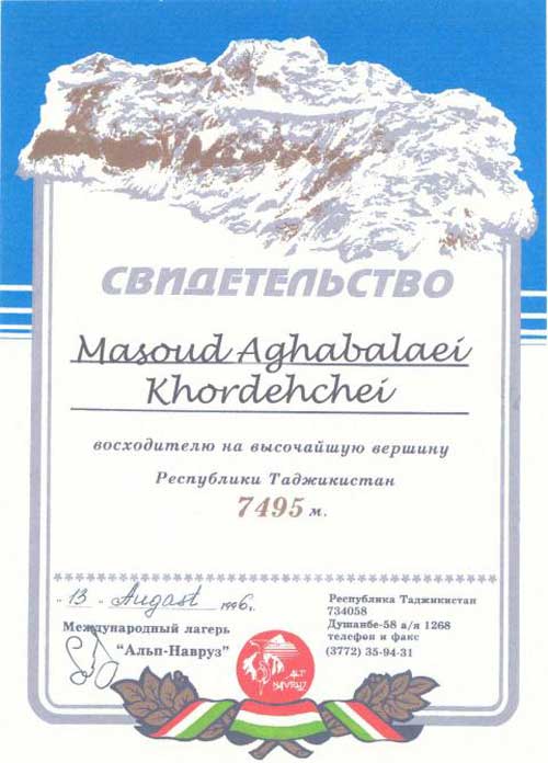 نمونه ای از صعودهای داخلی و برون مرزی مسعود آقابالائی