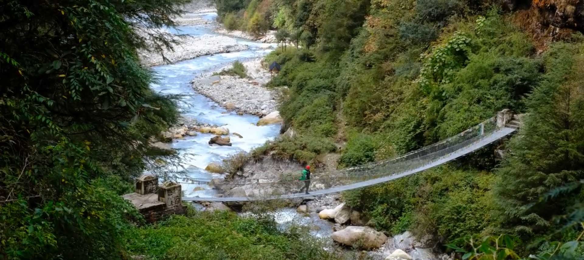 از میان جنگلهای انبوه، رودخانهها و مسیرهای مستعد رانش زمین به سمت رانیپول، روستایی در کنار رودخانه در نزدیکی رودخانه تامور، پیمایش می کنیم